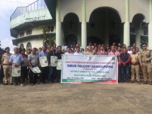 The Tamenglong Forest Division of the Manipur State Forest Department has continuously campaigned for the safe stay of the raptors during their two-month re-fueling process in Tamenglong. The staff of the division, enthusiastically led by its Divisional Forest Officer Kharibam Hitler Singh, a Manipur Forest Service officer, has worked tirelessly with the locals for the past several years without respite since 2015 to ensure that the falcons stay safe here.